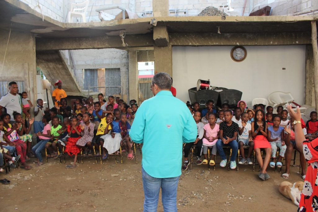 San Pedro de Macorís, RD. En una emotiva actividad coordinada por Ingrid Mota en Villa Esperanza, el candidato a la alcaldía del PLD y la alianza Rescate RD, junto al Dr. De León y los aspirantes a regidores Amaury Brioso (PLD), y Ramón Cabrera (BIS), compartieron momentos llenos de alegría con los niños de esa comunidad. La visita incluyó un almuerzo navideño en una iglesia en construcción, donde el compromiso fue claro: asumir la alcaldía en 2024 y finalizar la obra para proporcionar un espacio digno donde los niños puedan celebrar su cena navideña en condiciones óptimas.