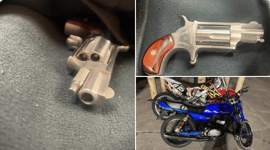 «¡Esta arma de fuego cargada ilegalmente fue encontrada en el conductor de un motor que no estaba registrada ni asegurada!», escribió Maddrey en un tuit.