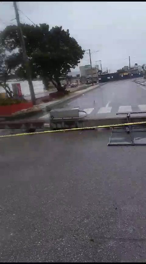 Las lluvias y los vientos que esta causando el paso de la tormenta Franklin por el pais causaron la caida de un poste del tendido electrico en el malecon de San Pedro de Macoris.