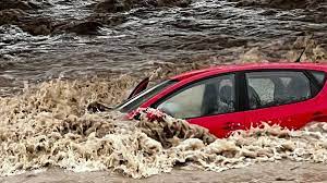Las fuertes corrientes lograron arrastrar un carro que intentó cruzar por el lugar con todos sus ocupantes.