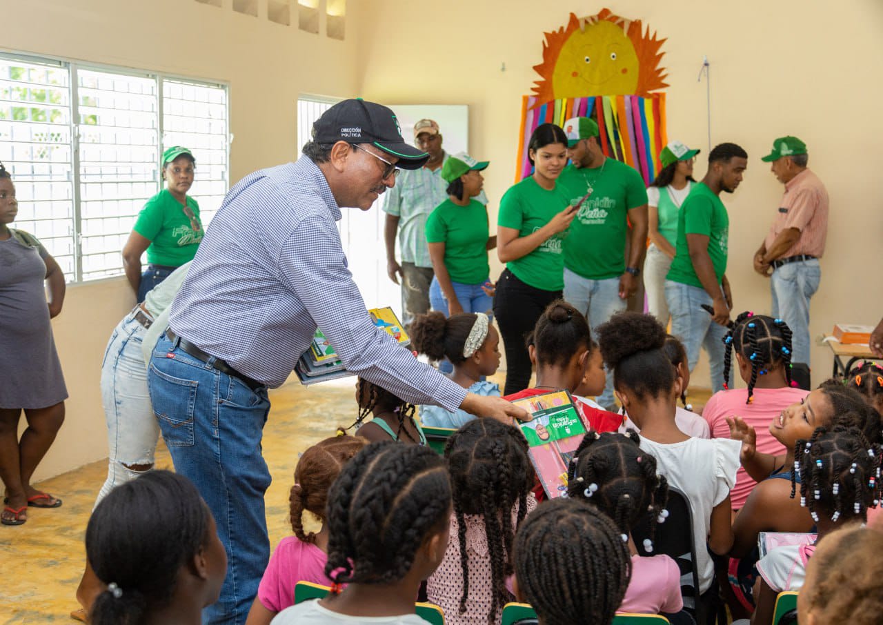 El senador Franklin Peña continuó este sábado con la entrega de útiles escolares en algunos municipios y diferentes comunidades de San Pedro de Macorís.