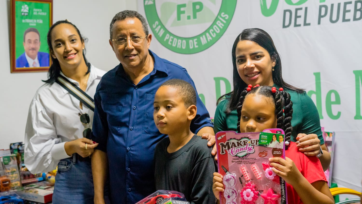 Posteriormente, se trasladó al local del Bloque C de la Fuerza del Pueblo, junto a Génesis Paulino y otros líderes de esa organización política continuaron la emotiva entrega de juguetes.