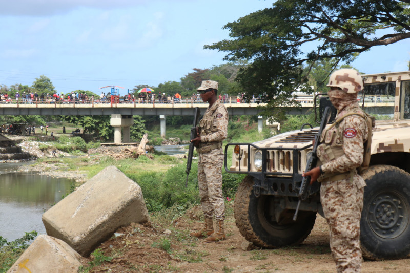 Tras las manifestaciones violentas en Juana Méndez militares del Cuerpo Especializado en Seguridad Fronteriza Terrestre (Cesfront) vigilan los alrededores y la entrada a territorio dominicano de cientos de haitianos que buscan participar en el mercado fronterizo de Dajabón.