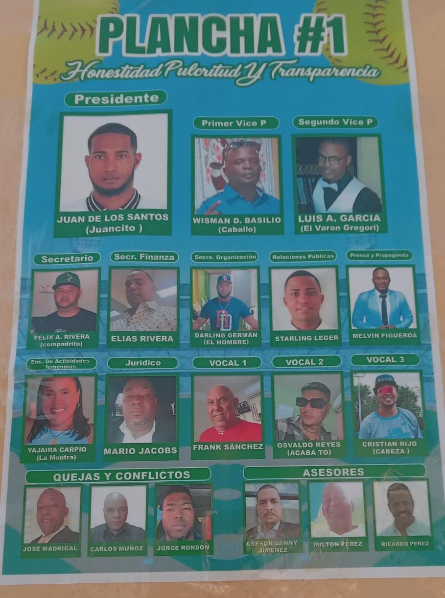 Este domingo 10 de marzo, fueron celebradas las elecciones de la Asociación de Softbol de esta Provincia, resultando ganadora la plancha 1, encabezada por JUAN DE LOS SANTOS (Juancito), logrando 65 votos de los 73 ejercidos.