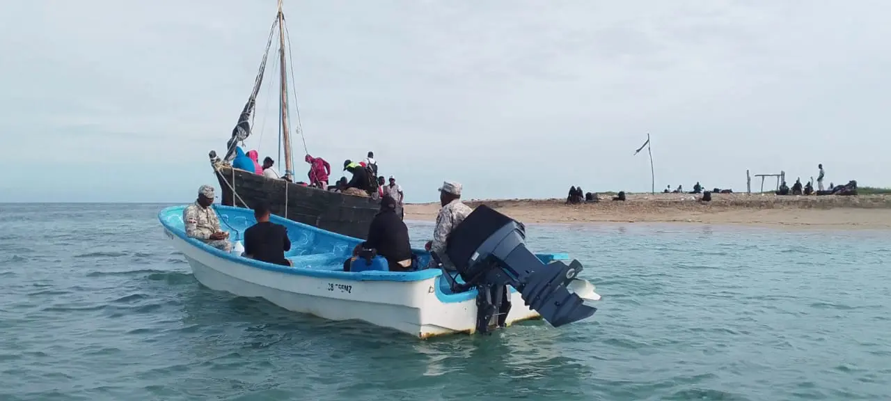 El Ministerio de Medio Ambiente y Recursos Naturales informó que interceptó, con el apoyo de la Armada, a un grupo de 96 nacionales haitianos que anclaron en uno de los Cayos Siete Hermanos para salvaguardarse durante una travesía migratoria en la que al parecer buscaban llegar a las Islas Turcas y Caicos.