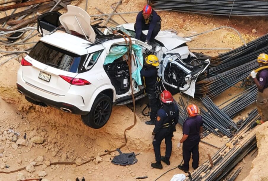 Dos personas fallecieron y otras dos resultaron heridas en un accidente de tránsito registrado en la madrugada de este domingo al caer un vehículo cayó en una construcción en la calle El Buen Pastor, zona de Evaristo Morales del Distrito Nacional, informó este domingo el Sistema 911.