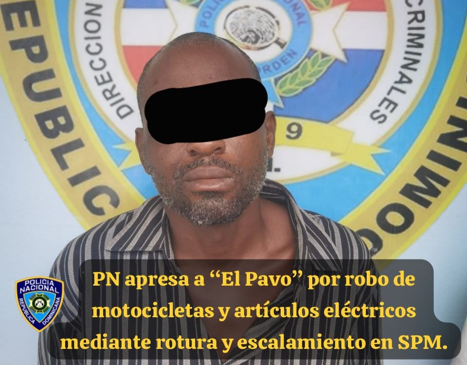El detenido es el nombrado Juan Carlos Sánchez Urbaez, (a) El Pavo, de 40 años, residente en el sector Las Colinas de esta ciudad, por el hecho de este tener múltiples denuncias y órdenes de arresto en su contra por la comisión de diferentes hechos delictivos, entre estas la No. 01978-2024, por robo de motocicletas y artículos de electricidad mediante rotura y escalamiento en residencias, centros educativos y negocios en diferentes sectores de esta ciudad.