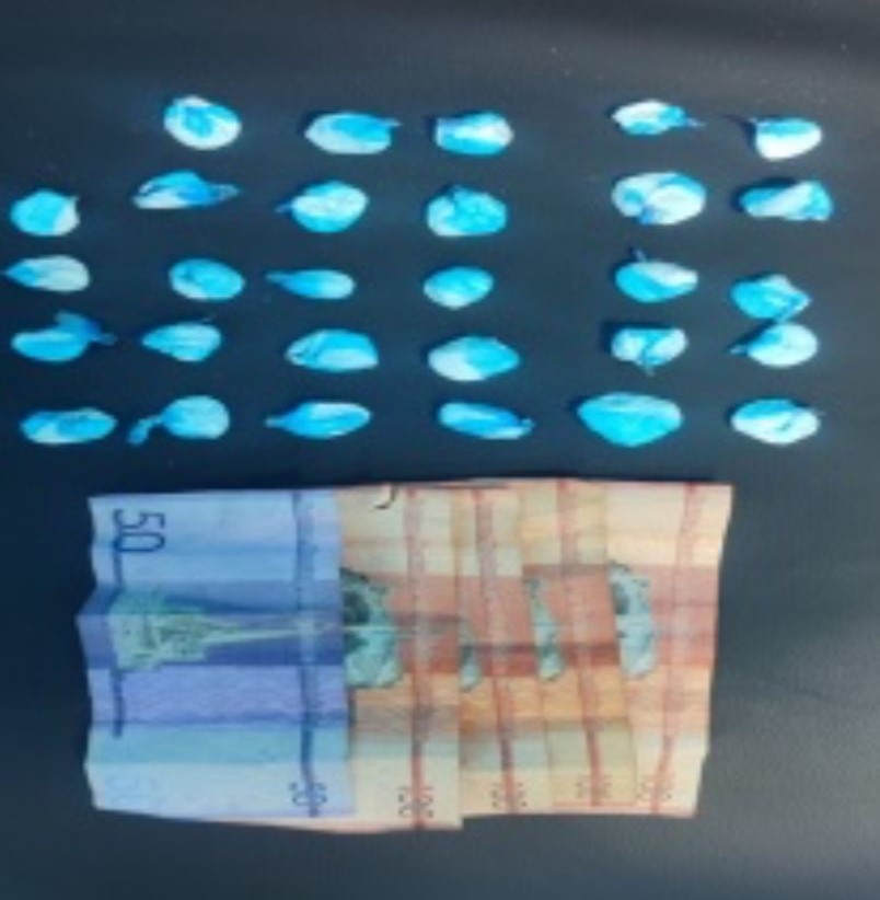 El primero de los detenidos es Jesús Manuel Jiménez Ureñas, de 25 años, residente en la calle Independencia #14, centro de Bonao. Fue arrestado mientras se encontraba en la calle Mercedes, Durante el registro, se le ocuparon 29 porciones de un polvo blanco, presumiblemente cocaína, envueltas en un pedazo de funda plástica transparente con una raya azul, con un peso indeterminado de gramos, la suma de RD$450 pesos, compuesta por cuatro billetes de RD$100 y un billete de RD$50.