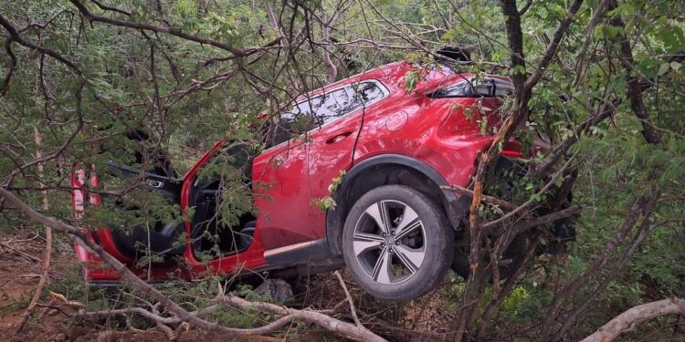 Tras la persecución por miembros de la Cuarta Brigada de Infantería del ejército de República Dominicana con asiento en Mao, el conductor de la Yipeta marca changai, color rojo, placa No. G630885, perdió el control deslizándose hacia los árboles.