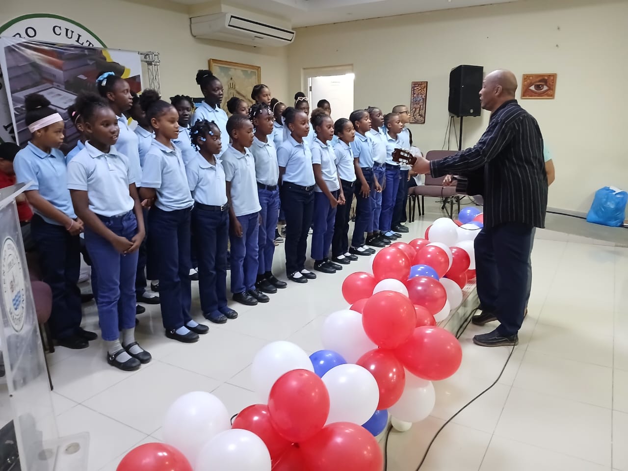 Decenas de estudiantes de varías escuelas acompañados de maestros se dieron cita en el centro Cultural Macorisano frente a la catedral San Pedro Apóstol.
