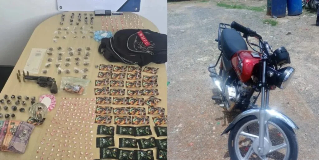 El detenido fue identificado como Geison Roa Ruiz, de 26 años, alias “El Gordo”, quien fue apresado en una vivienda de dos niveles, pintada de rosado en el primer piso y azul en el segundo. En el lugar se ocupó un revólver calibre 38 marca ROSSI con seis cápsulas, 10.9 gramos de un polvo blanco presumiblemente cocaína, 271 porciones de una sustancia similar al crack y 131 porciones de un vegetal presumiblemente marihuana.