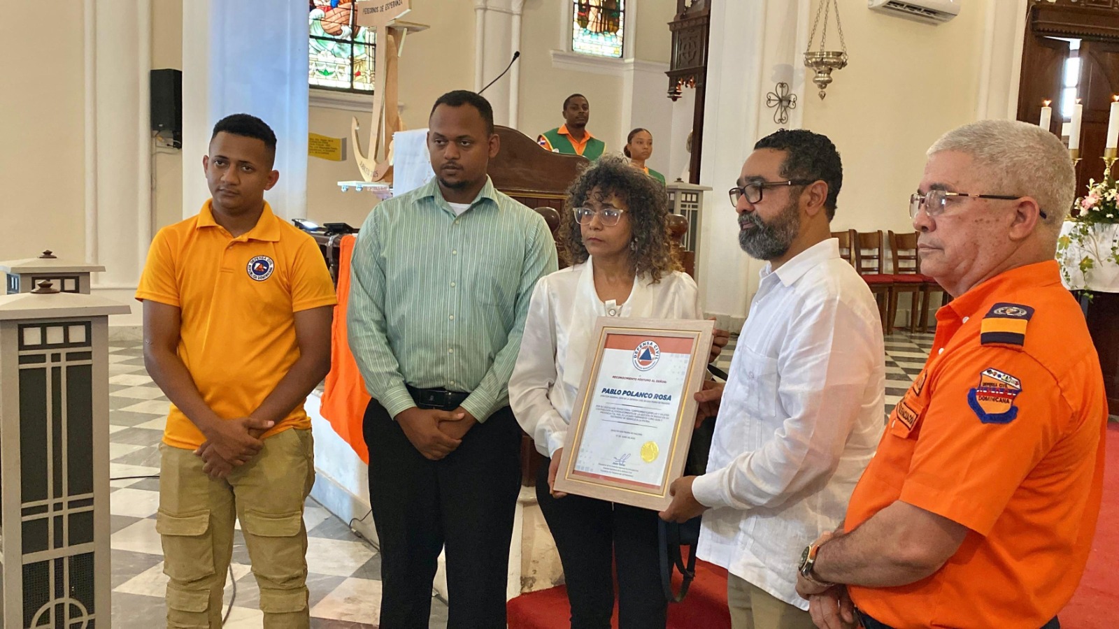 En un emotivo acto celebrado tras una misa conmemorativa, el director ejecutivo de la Defensa Civil, Juan Salas, entregó un reconocimiento póstumo a Pablo Polanco Rosa, exdirector regional Este de esa institución, por su destacada trayectoria, compromiso ejemplar y valiosa contribución al fortalecimiento de la gestión de riesgo en la República Dominicana.