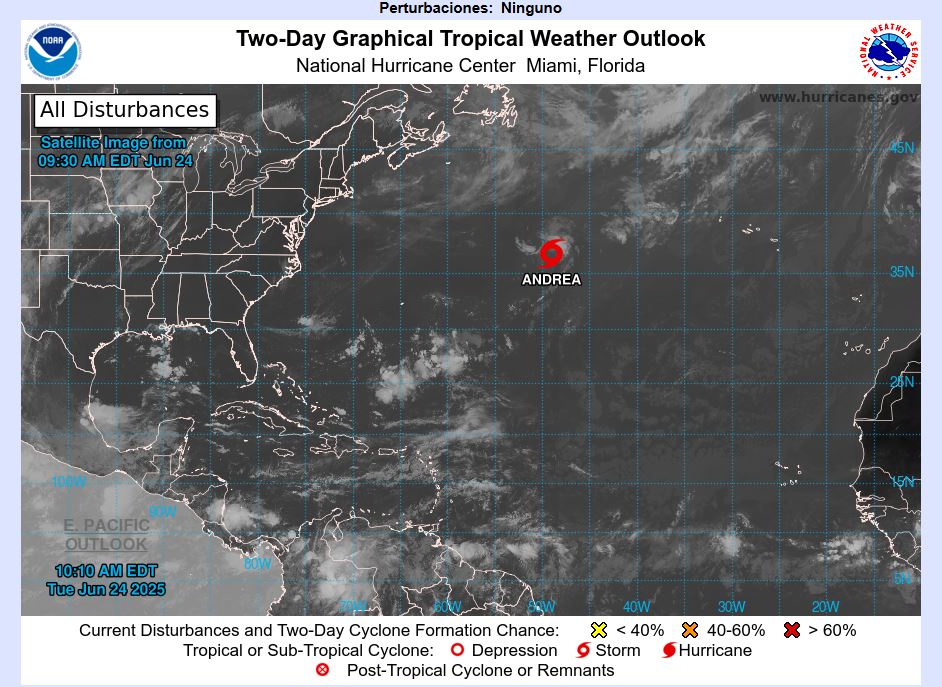 La tormenta tropical Andrea se formó este martes en el océano Atlántico, convirtiéndose en el primer ciclón con nombre de la temporada ciclónica 2025, según informó el Centro Nacional de Huracanes (NHC) de Estados Unidos.