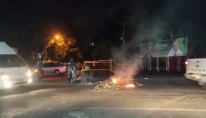 Gomas incendiadas, palos, basura , botellas rotas y otros escombros fueron lanzados en la zona como forma de mostrar disgusto por las largas tandas de apagones de parte de edeeste.