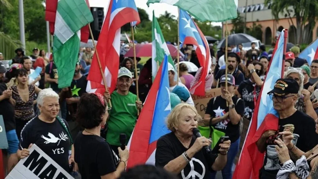 Cientos de puertorriqueños se manifiestan contra ejercicios militares de EE.UU. en un clima de creciente tensión en el Caribe. La protesta tuvo lugar este domingo frente a la base aérea Muñiz, donde los manifestantes expresaron su rechazo a las maniobras del ejército estadounidense en la isla y la posible reactivación de antiguas bases militares.