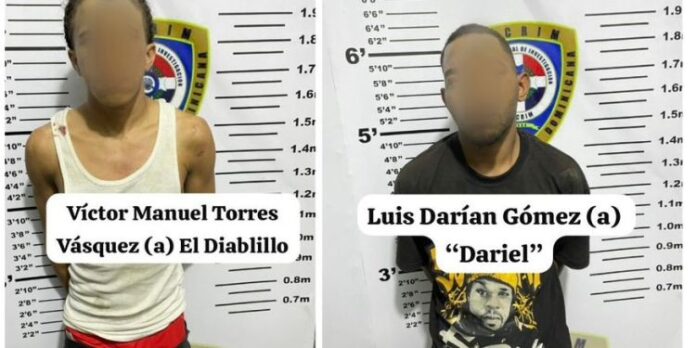 De acuerdo con un comunicado, los detenidos son Víctor Manuel Torres Vásquez “El Diablillo”, de 24 años, y Luis Darían Gómez “Dariel”, de 21, quienes fueron sorprendidos a bordo de una motocicleta marca Tauro, modelo CG200, color negro, sin placa, justo en el momento en que asaltaban a un haitiano a las 6:00 de la mañana del jueves.