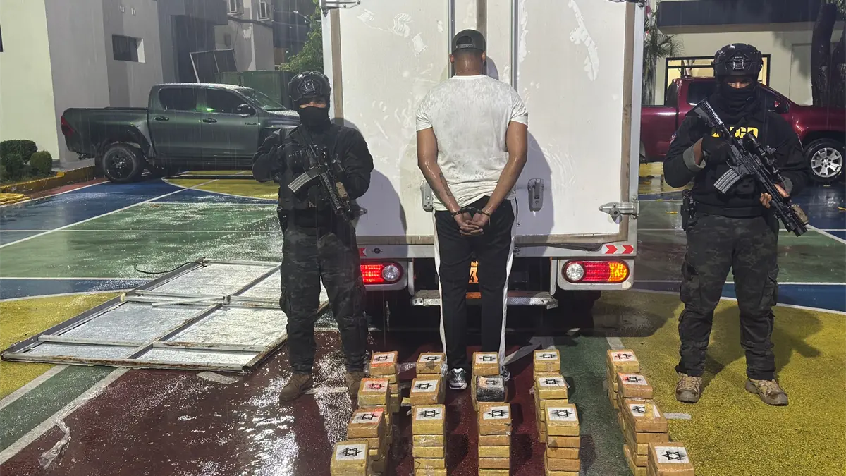 El detenido y el vehículo fueron trasladados a la sede de la DNCD, donde se realizó una inspección más rigurosa, descubriendo en el techo del camión, un compartimiento secreto (caleta), en cuyo interior se confiscaron los paquetes de la sustancia, envueltos en papel de color marrón y cinta adhesiva.