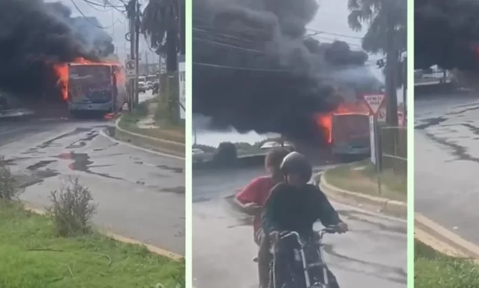 Un autobús de la Oficina Metropolitana de Servicios de Autobuses (OMSA) se incendió la tarde del martes en la Marginal de Las Américas, próximo al kilómetro 14, en el sector Los Frailes.