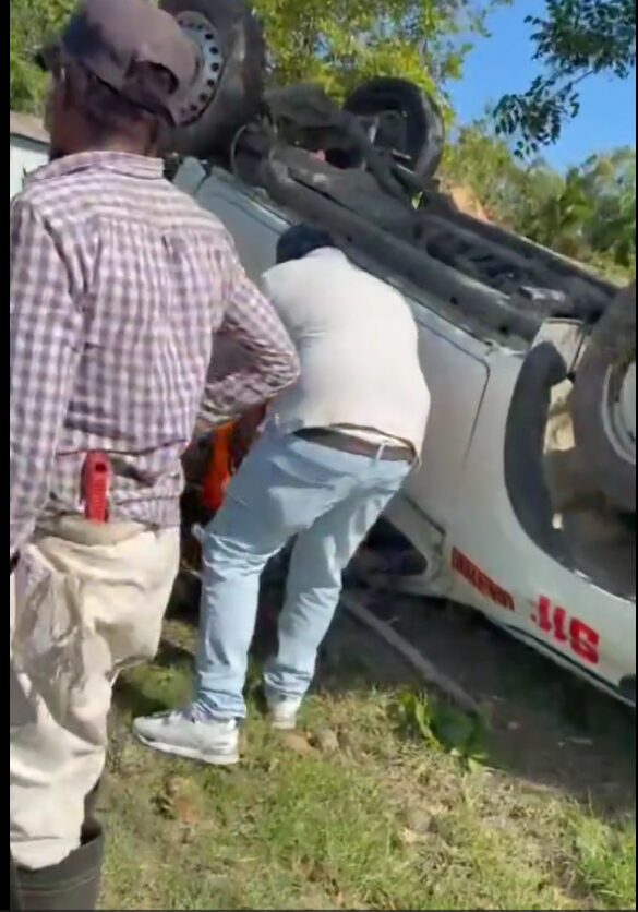 Entre los vehículos involucrados hay una camioneta de @rdvial, la cual se volcó y quedó con las cuatro gomas hacia arriba.