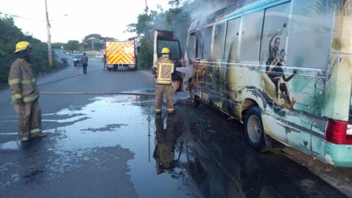 Un chofer resultó con quemaduras de tercer grado en gran parte de su cuerpo luego de que el autobús que conducía se incendiara la mañana de este jueves, en la avenida Estados Unidos, próximo a la Cueva Taína, en el distrito de Verón Punta Cana, municipio Higüey, provincia La Altagracia.