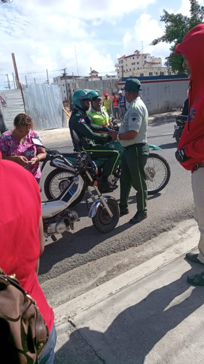 En un operativo montado por la Digesett en la avenida Luis Amiama Tió, próximo al puente peatonal de la zona franca, provocó un accidente donde una mujer embarazada y un niño resultaron lesionados.